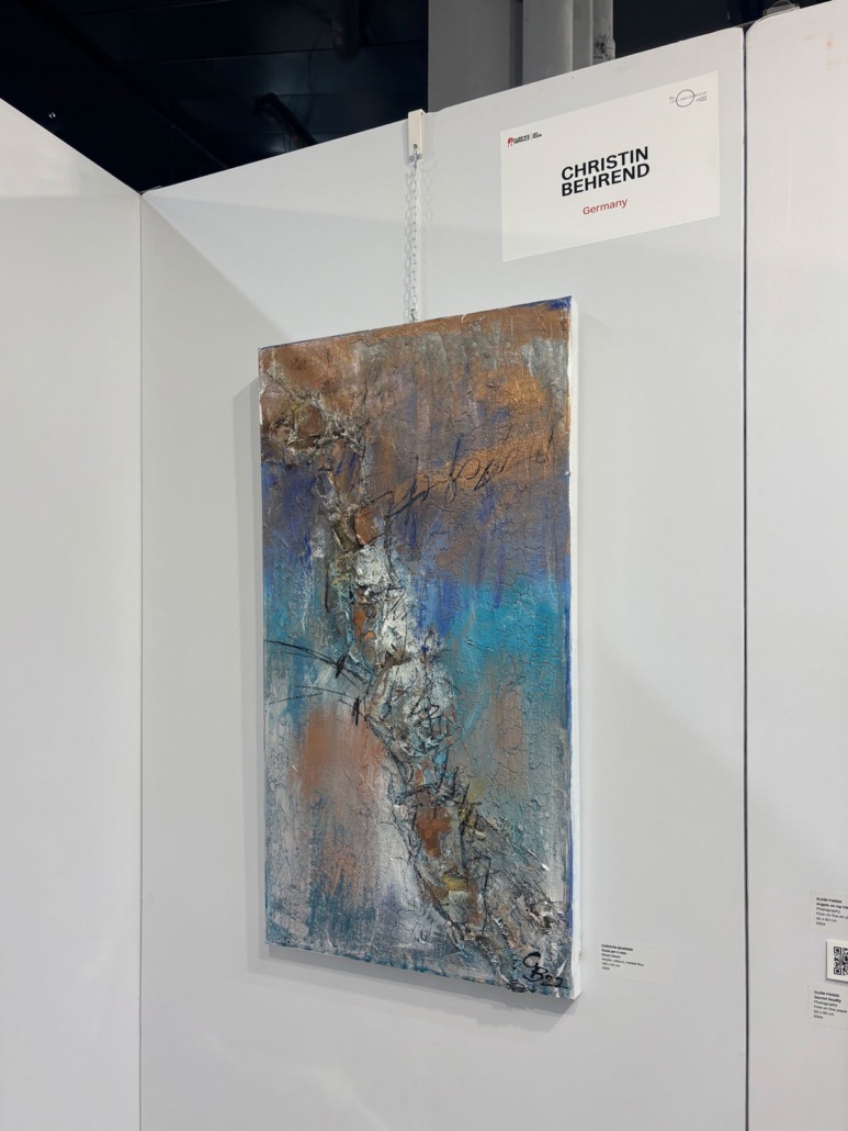 Christin Behrend verbindet experimentelle und expressive Malstile, ausgeführt in Acrylfarben auf aufgerautem Untergrund, erzeugt durch mit Bindemittel angereichertes Marmormehl.